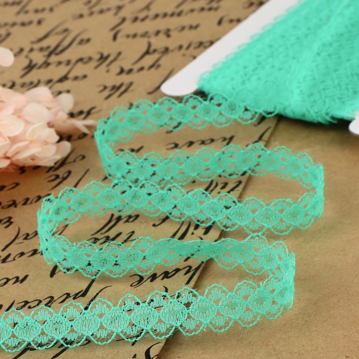 Кружево капроновое, 15 мм, 10±1 м, цвет зелёный
