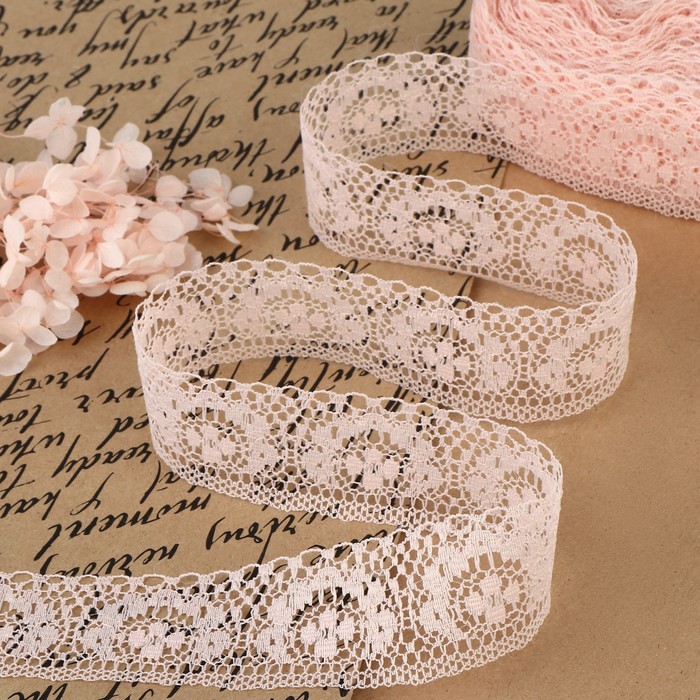Кружево капроновое, 35 мм, 10±1 м, цвет персиковый