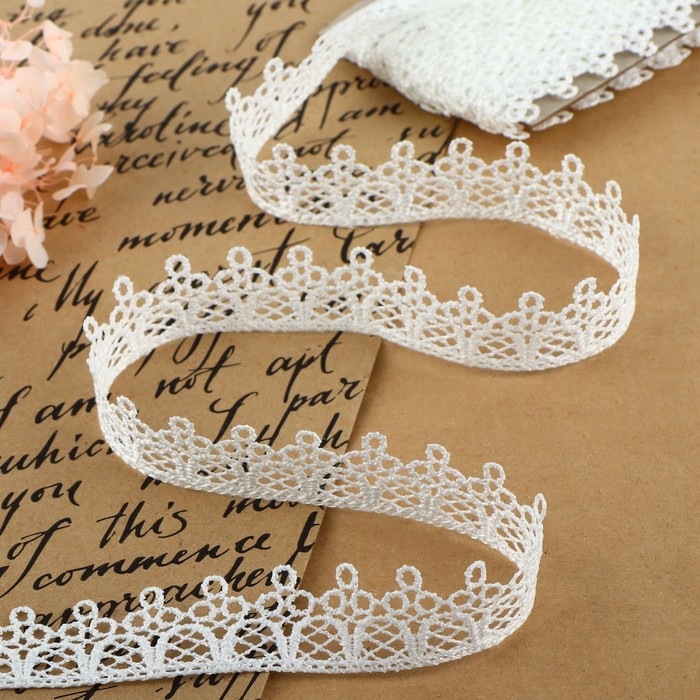 Кружево гипюровое, 20 мм, 9±0.5 м, цвет белый