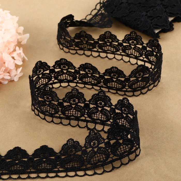 Кружево гипюровое, 45 мм, 6.8±0.5 м, цвет чёрный