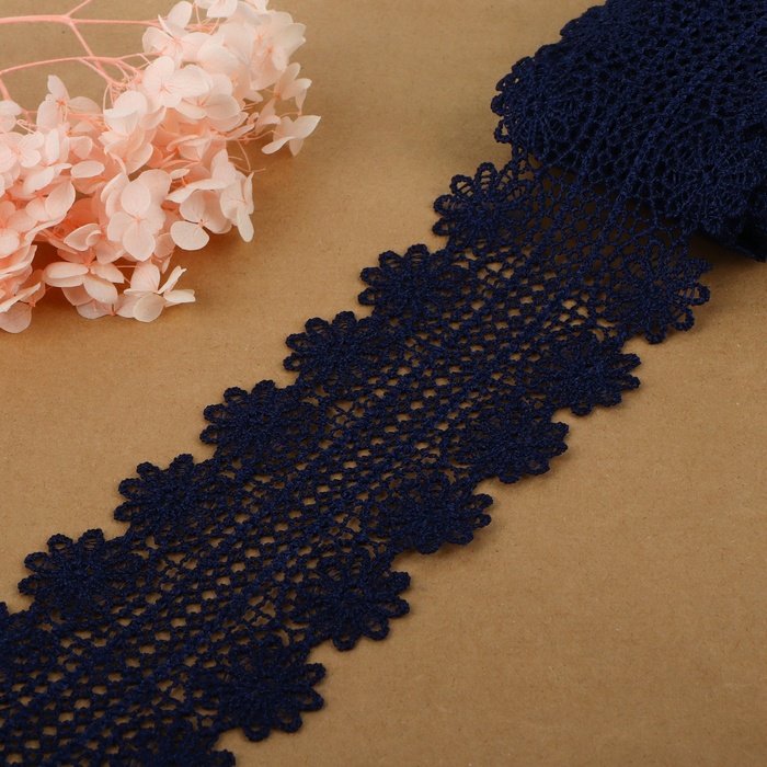 Кружево гипюровое, 70 мм, 6.8±0.5 м, цвет тёмно-синий