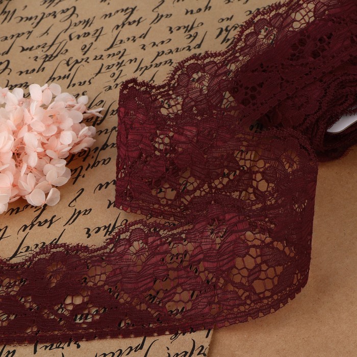 Кружево капроновое, 60 мм, 10±1 м, цвет бордовый