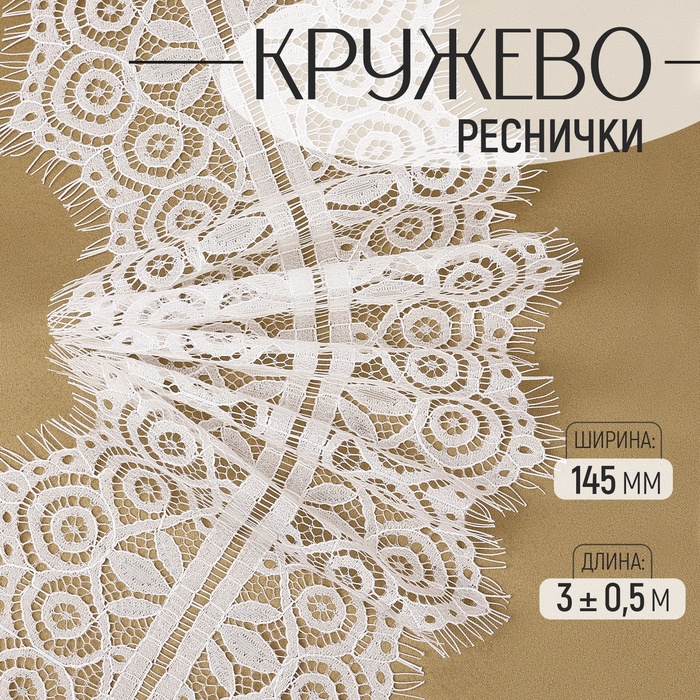 Кружево реснички, 145 мм, 3±0.5 м, белое