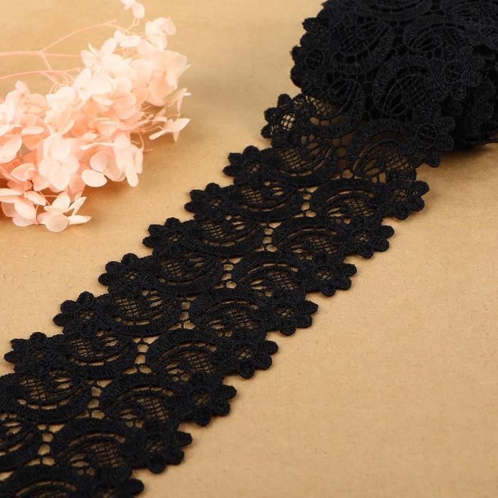 Кружево гипюровое, 65±5 мм, 6.8±0.5 м, цвет чёрный