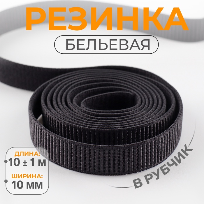 Резинка бельевая, в рубчик, 10 мм, 10±1 м, чёрная