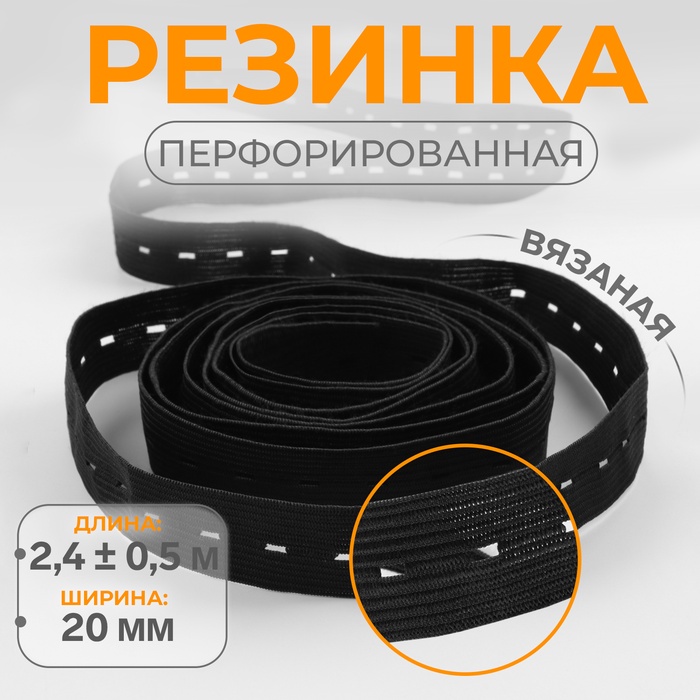 Резинка вязаная, перфорированная, 20 мм, 2.4±0.5 м, чёрная