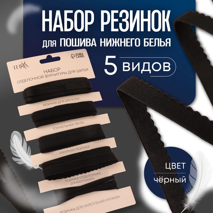 Набор резинок для пошива нижнего белья TEIRA, 5 видов, чёрный