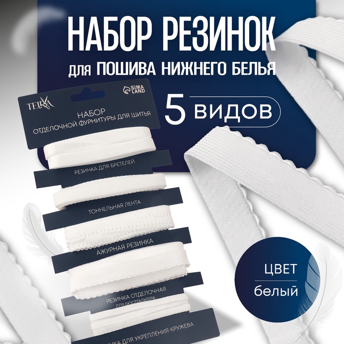 Набор резинок для пошива нижнего белья TEIRA, 5 видов, белый