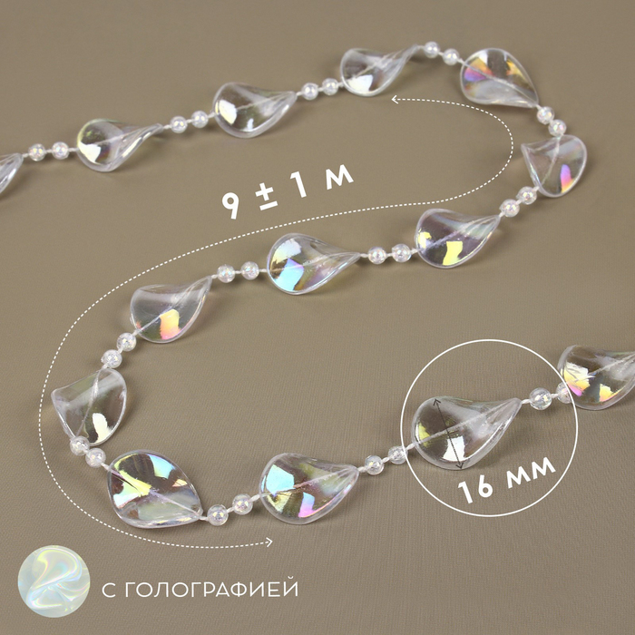 Бусины на нитях, с голографией, 16 мм, 9±1 м, прозрачные