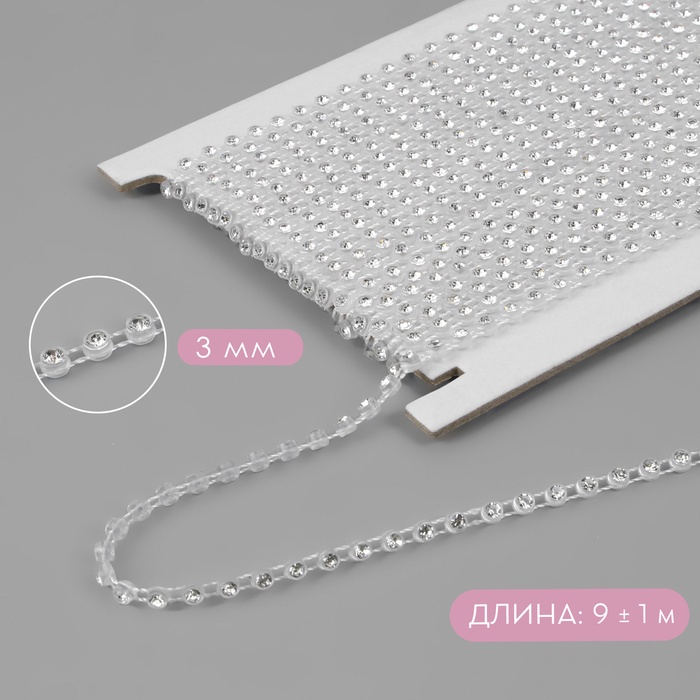 Стразы на нитях, 3 мм, 9±1 м, прозрачные