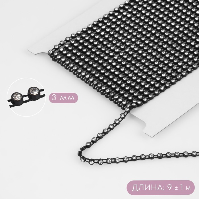 Стразы на нитях, 3 мм, 9±1 м, чёрные