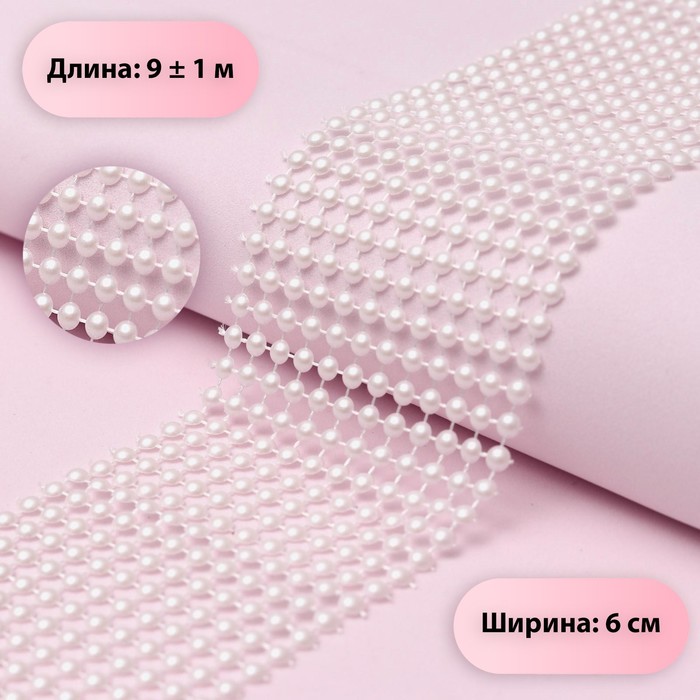 Лента с имитацией жемчуга, 6 см, 9±1 м, белая