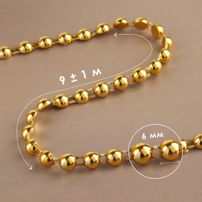 Бусины на нитях, плоские, 6 мм, 9±1 м, цвет золотой