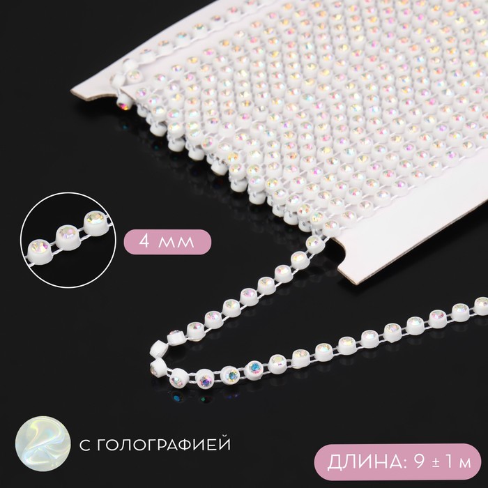 Стразы на нитях, с голографией, 4 мм, 9 ± 1 м, белые