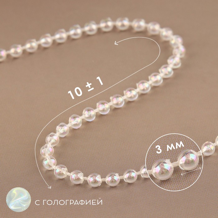 Стразы на нитях, с голографией, 3 мм, 9±1 м, белые