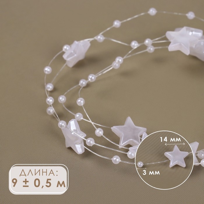 Бусины на леске, «Звёзды», 3/14 мм, 9±0.5 м, белые