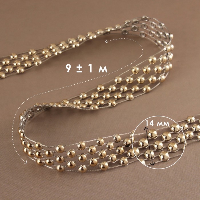 Бусины на нитях, плоские, 14 мм, 9±1 м, цвет золотой