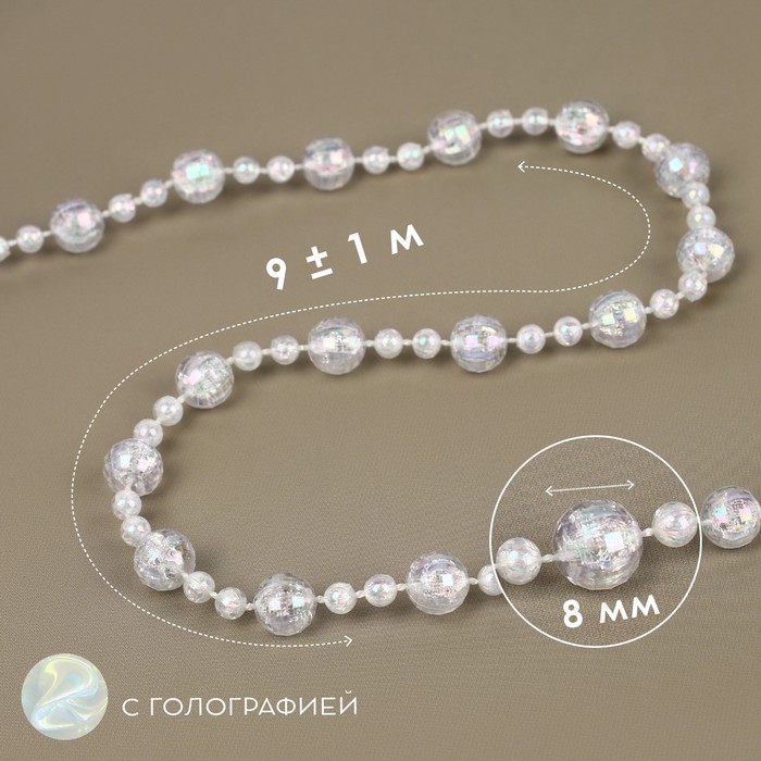 Бусины на нитях, с голографией, 8 мм, 9±1 м, прозрачные