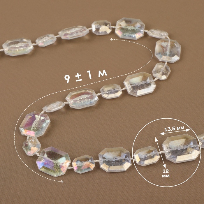 Бусины на нитях, с голографией, 9±1 м, прозрачные