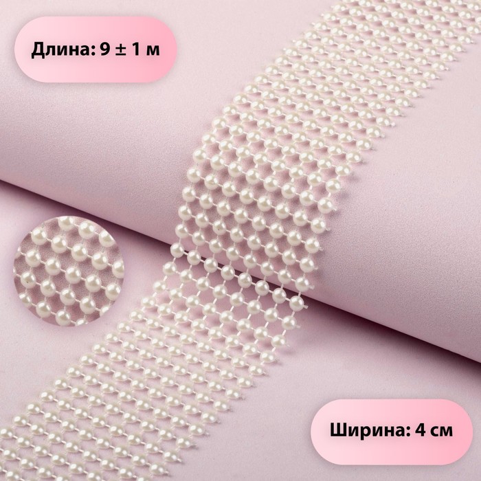 Лента с имитацией жемчуга, 4 см, 9±1 м, белая