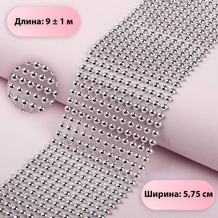 Лента с имитацией выпуклых страз, 5.75 см, 9±1 м, цвет серебряный