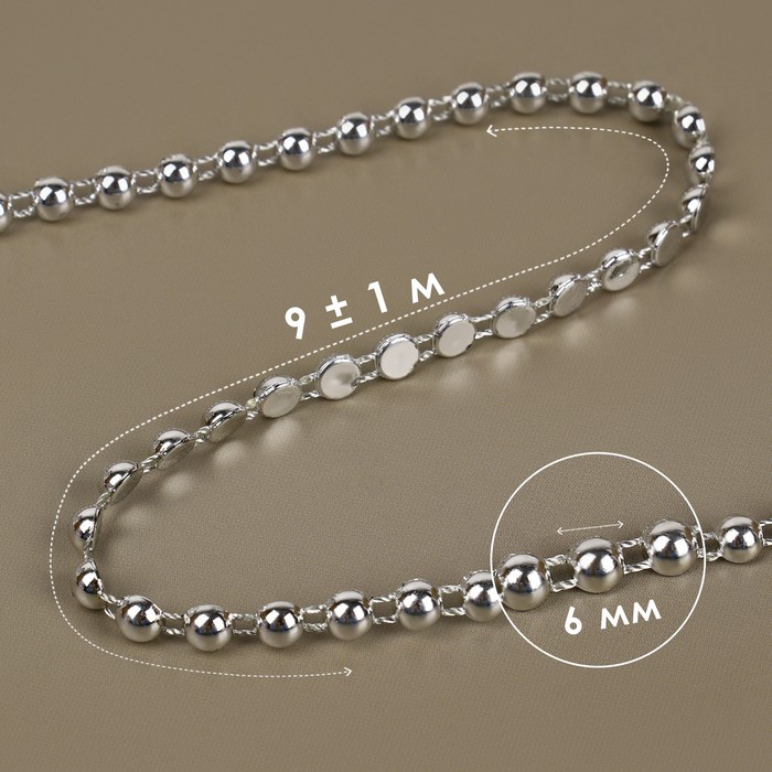 Бусины на нитях, плоские, 6 мм, 9±1 м, цвет серебряный