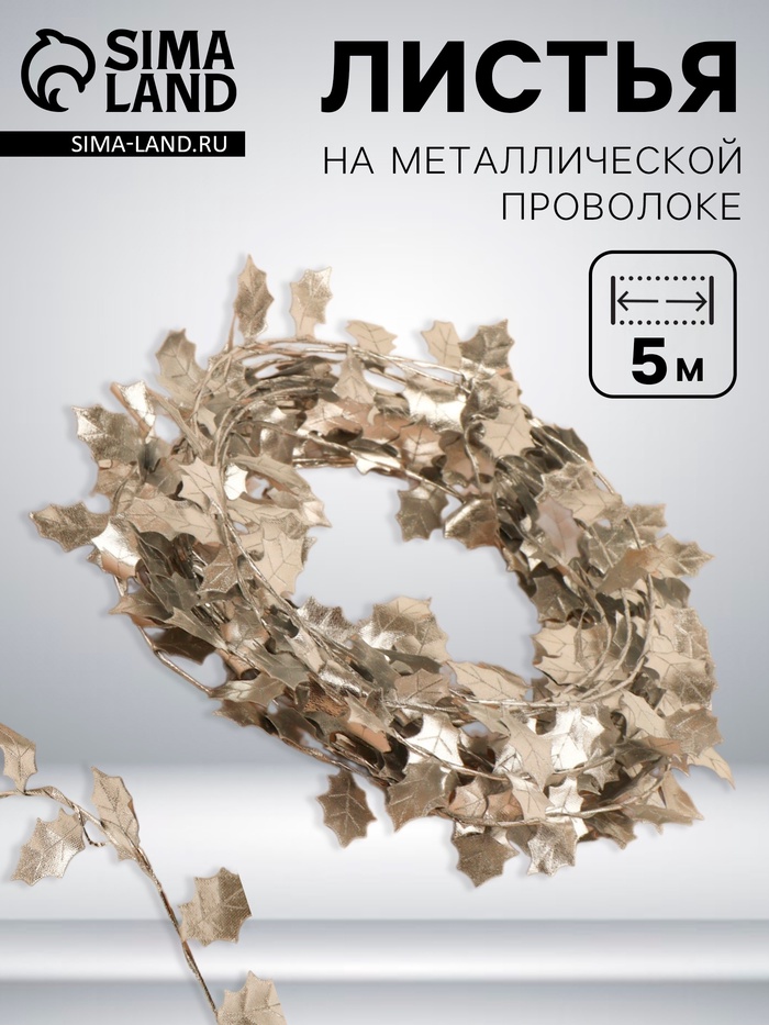 Листья на металлической проволоке, 21×18 мм, 5 м, цвет серебряный