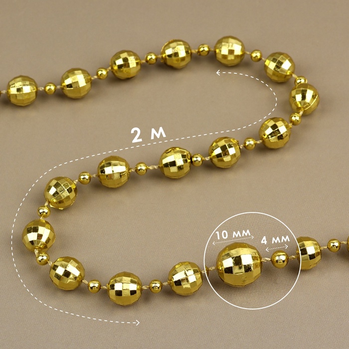 Бусины на нитях «Диско шар», 10/4 мм, 2 м, цвет золотой