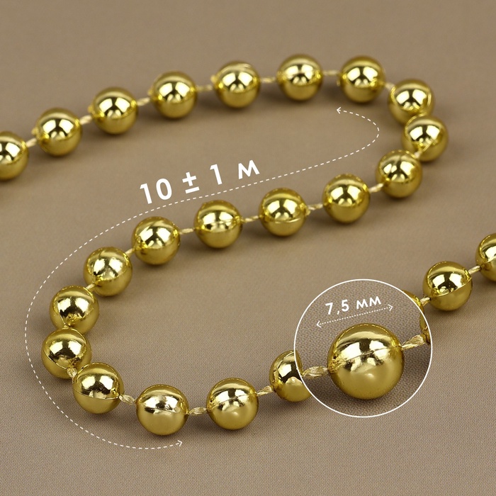 Бусины на нитях, круглые, 12 мм, 2 м, цвет золотой