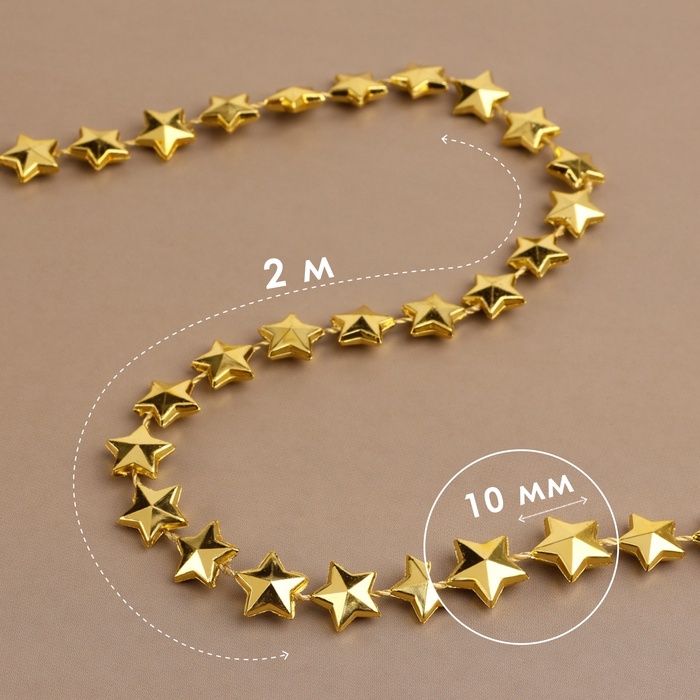 Бусины на нитях «Звёзды», 10 мм, 2 м, цвет золотой