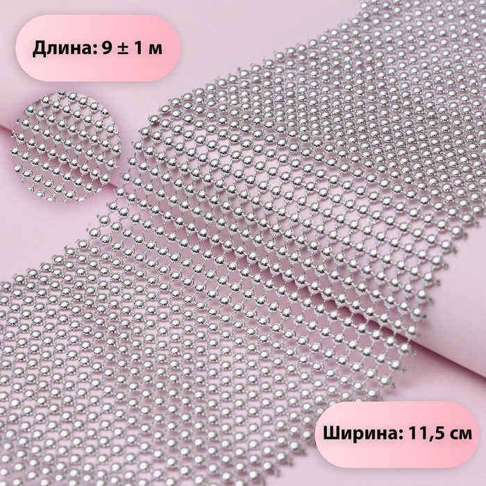 Лента с имитацией выпуклых страз, 11.5 см, 9±1 м, цвет серебряный
