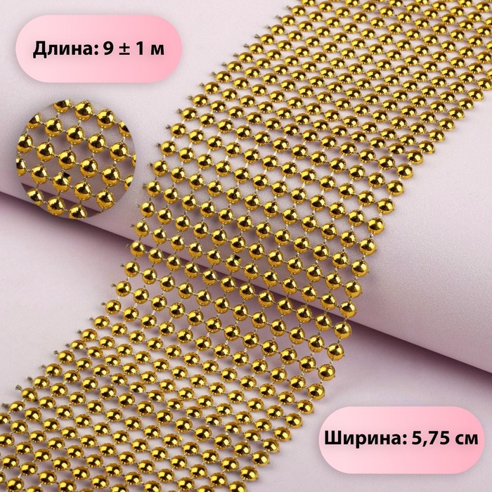 Лента с имитацией выпуклых страз, 5.75 см, 9±1 м, цвет золотой
