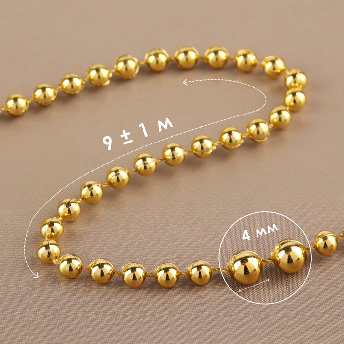 Бусины на нитях, круглые, 4 мм, 9±1 м, цвет золотой