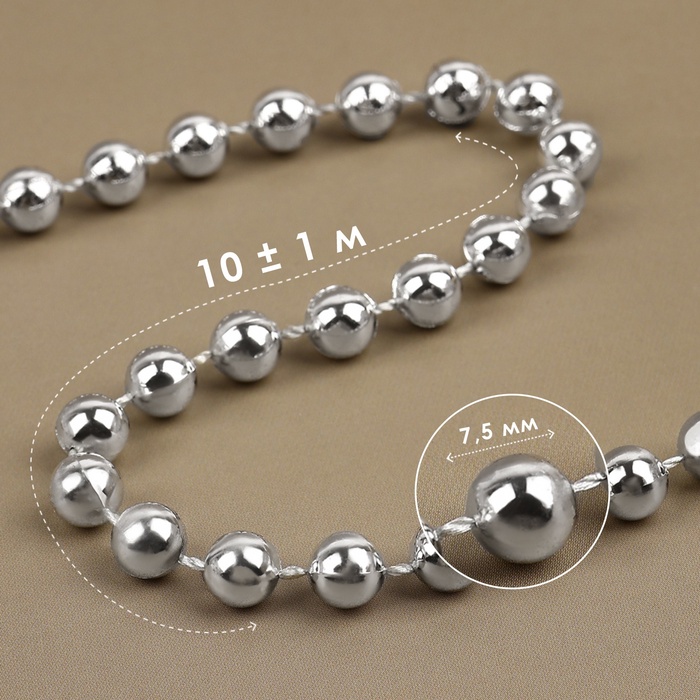 Бусины на нитях, круглые, 7.5 мм, 10±1 м, цвет серебряный