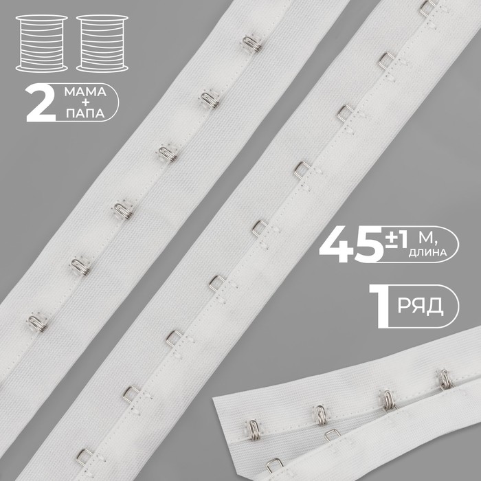 Тесьма с крючками, 27 мм×45±1 м, белая