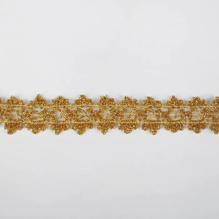Тесьма золотая «Крестики с трилистниками», 2,7 см, в рулоне 10 м