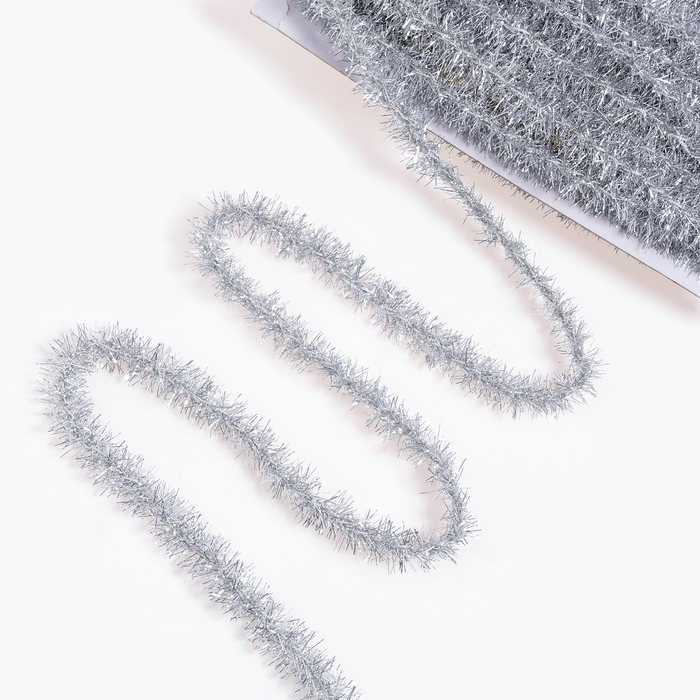Тесьма в виде мишуры серебро 1,5 см, в упаковке 24,5 метров