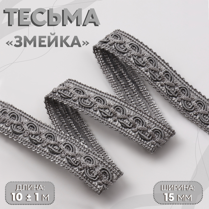Тесьма декоративная «Змейка», 15 мм, 10±1 м, цвет серебряный