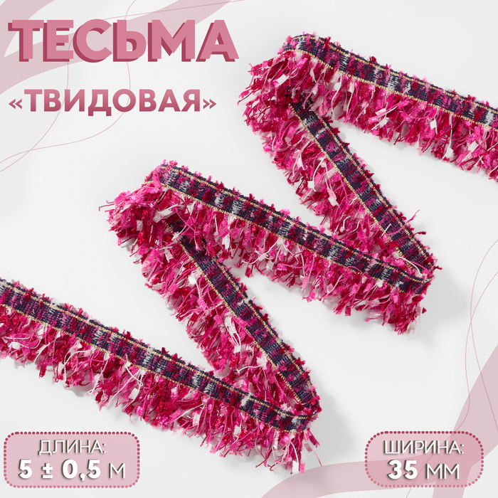 Тесьма декоративная «Твидовая», односторонняя, 35 мм, 5±0.5 м, фуксия