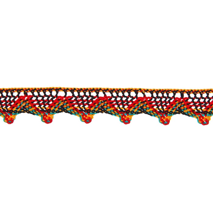 Тесьма плетёная красно оранжево черно бирюзовая 2 см, в упаковке 20 метров