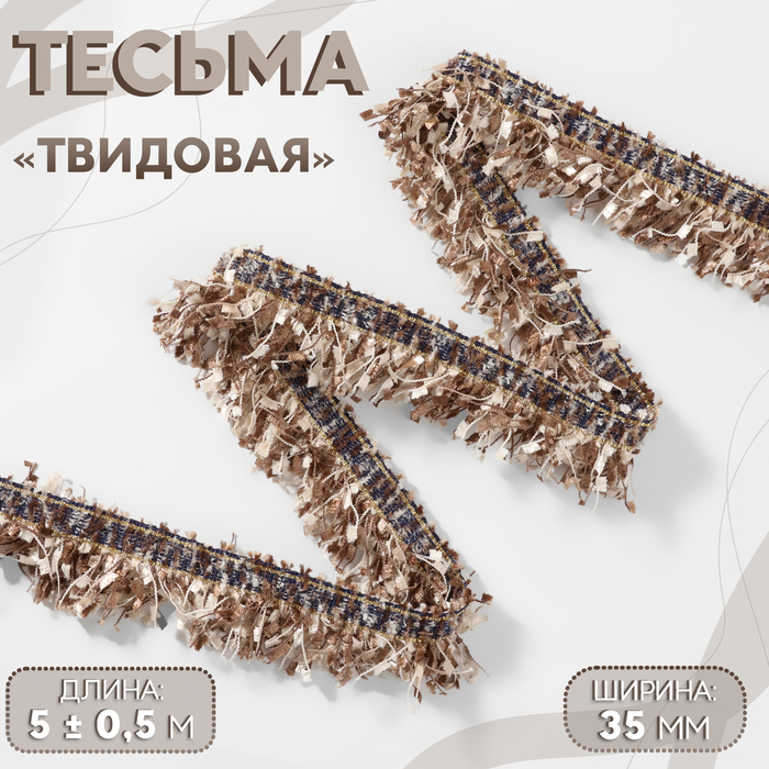 Тесьма декоративная «Твидовая», односторонняя, 35 мм, 5±0.5 м, кофейная