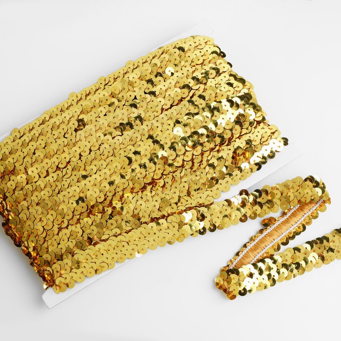 Тесьма декоративная с пайетками, на резинке, 2 см, 9±0.5 м, цвет золотой