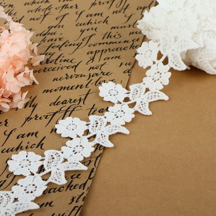 Кружево гипюровое, 50 мм, 14±1 м, цвет белый