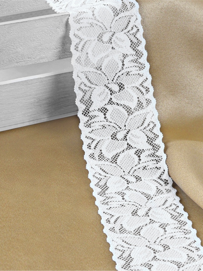 Кружево эластичное, 60 мм × 10 ± 1 м, цвет айвори