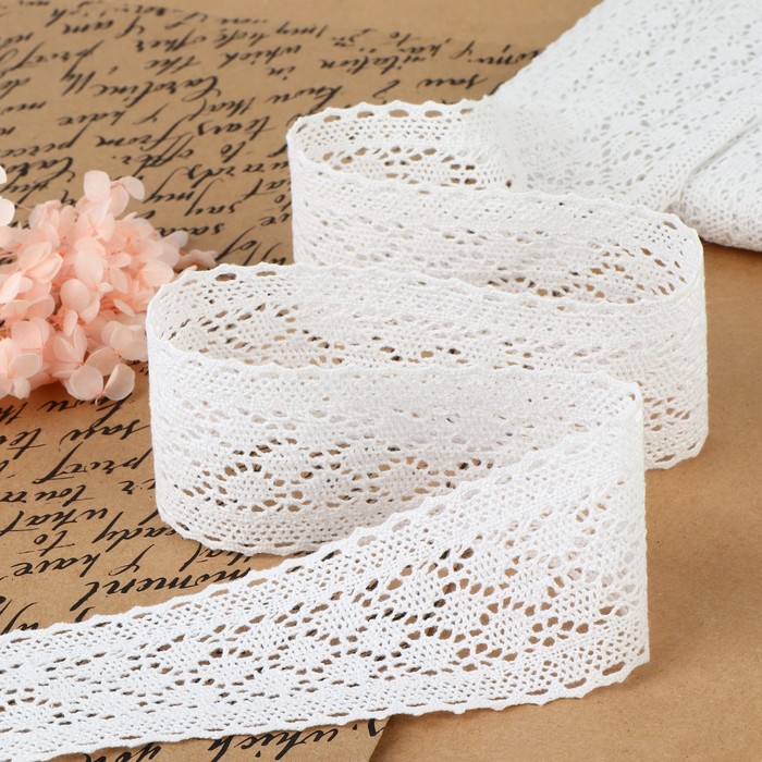 Кружево вязаное, 55 мм, 10±1 м, белое