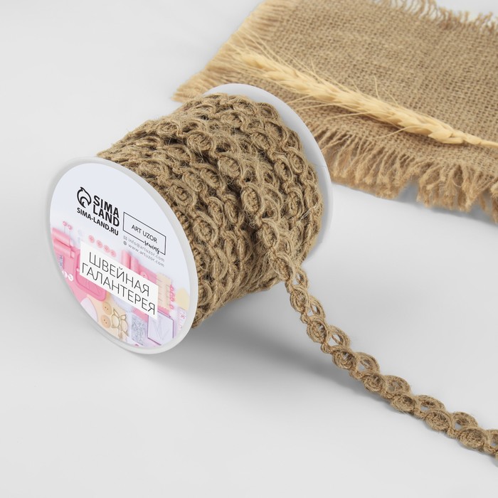 Тесьма декоративная холщовая «Вензеля», 12 мм, 10 ± 0,5 м, цвет бежевый