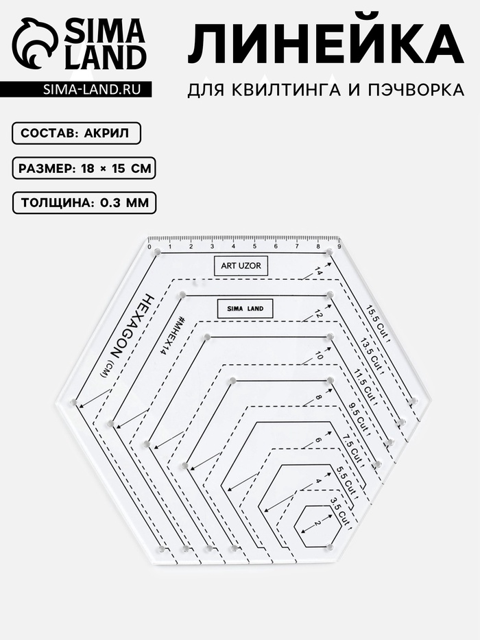 Линейка для квилтинга и пэчворка, 18×15 см, белый