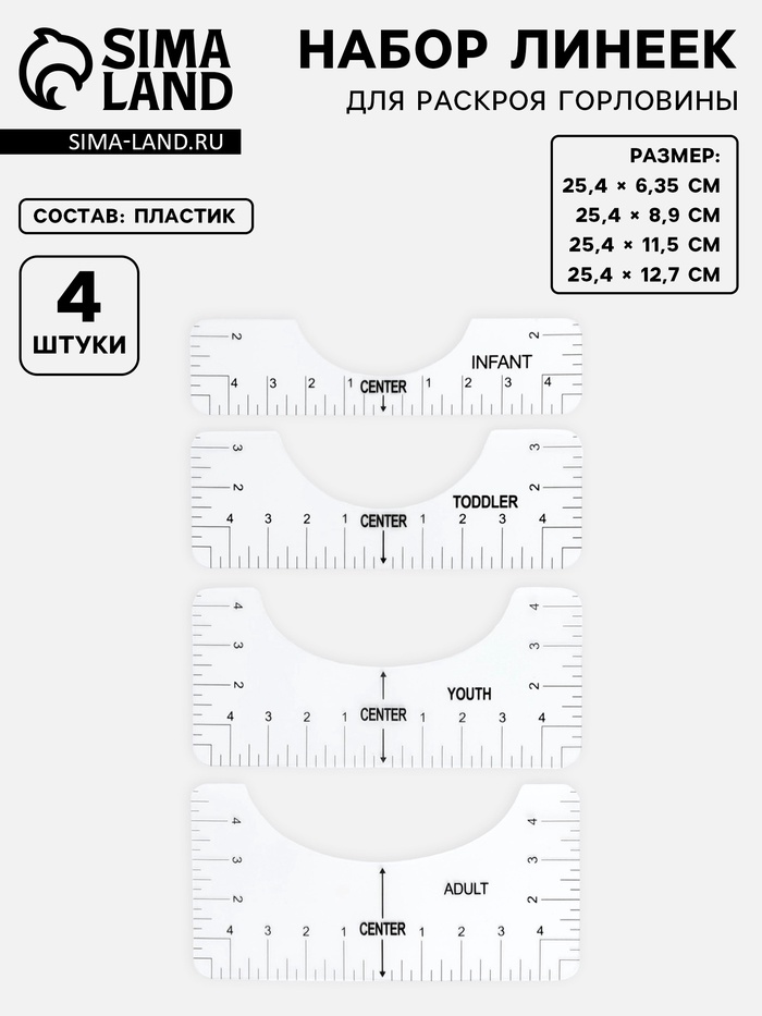 Набор линеек для раскроя горловины, 4 шт., 25.4×6.35/8.9/11.5/12.7 см