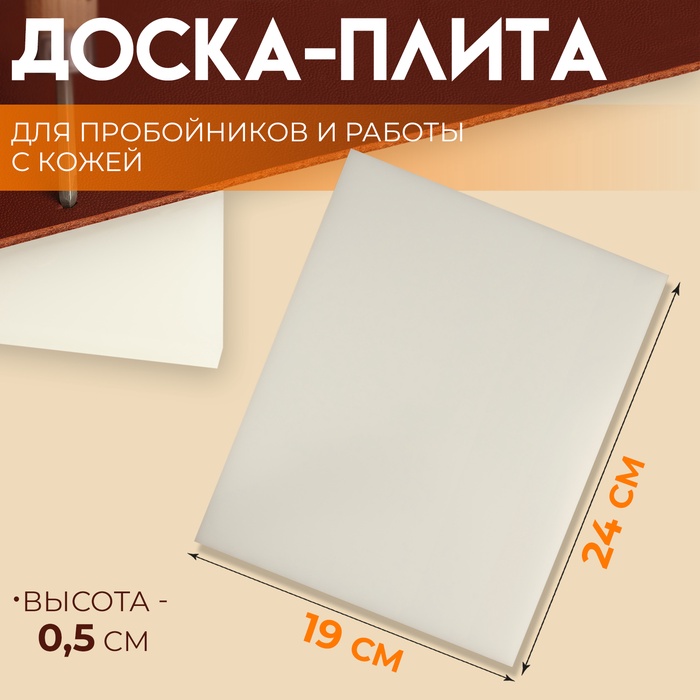 Плита для пробойников и работы с кожей, 24×19×0.5 см, белая