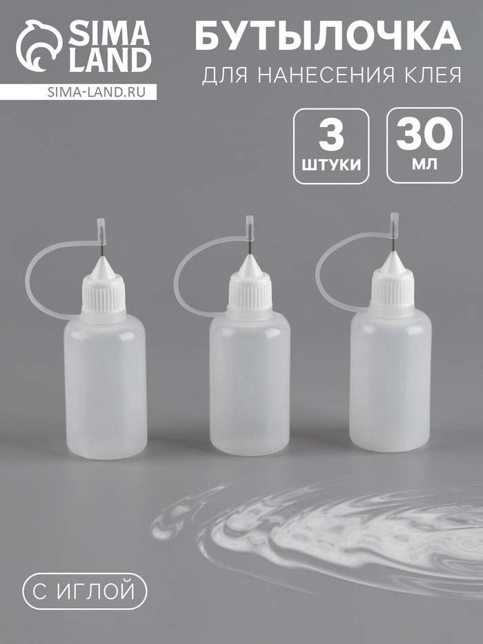 Бутылочка для нанесения клея, с иглой, 30 мл, набор 3 шт., прозрачная